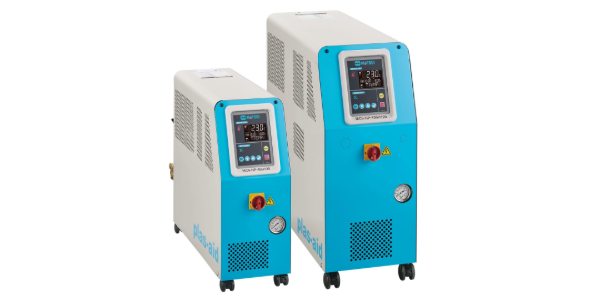 - 温調機は、金型内の温度を制御する装置です。装置内部にはポンプやヒーターが組み込まれており、媒体(水や油など)を加熱・冷却しながら金型の温度を制御します。