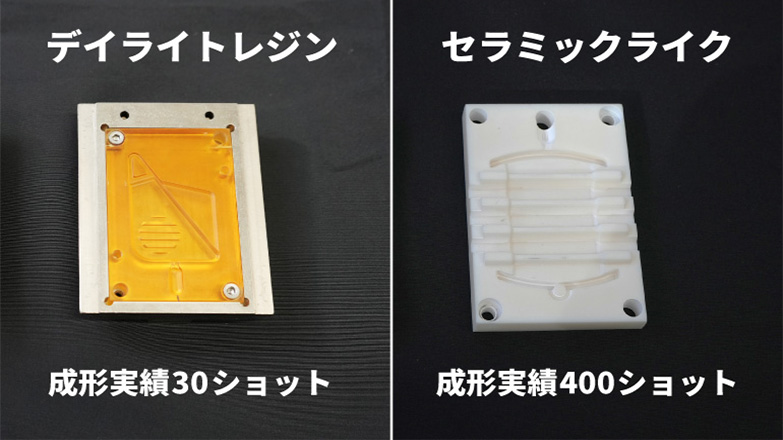 樹脂型は材質によっては1,000ショット程度の耐久性を持たせることも可能で、さらに手持ちの3Dプリンターで樹脂型を製作できるため、コスト面でのメリットは非常に大きいです。